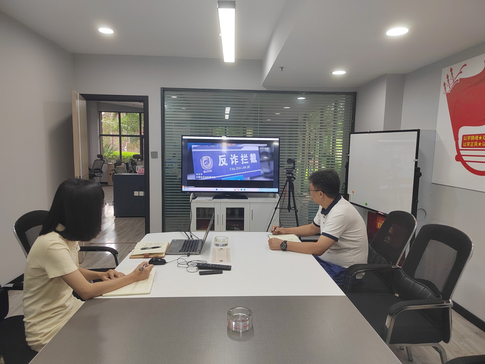 公司聚焦做兼職刷單、投資理財、網(wǎng)絡(luò)貸款、出售、出租、出借對公賬戶、“兩卡”、“跑分”洗錢、吸粉引流等高發(fā)詐騙類型,積極組織全員觀看反詐警示教育片和防范宣傳視頻,同時通過微信公眾號推送防范網(wǎng)絡(luò)詐騙宣傳視頻、在宣傳欄張貼防范網(wǎng)絡(luò)詐騙宣傳海報、邀請員工講述電詐遭遇和交流學(xué)習(xí)心得等方式,深刻揭露詐騙套路和嚴重危害,有效增強全員對電信網(wǎng)絡(luò)詐騙關(guān)聯(lián)違法犯罪的認識,避免成為電信網(wǎng)絡(luò)詐騙分子的“工具人”和幫兇。