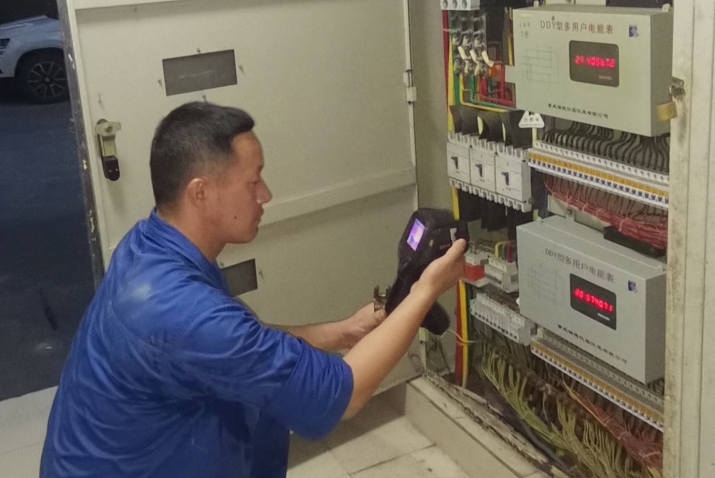 為有效排查配電設(shè)備發(fā)熱隱患,檢查人員利用晚間用電高峰時段,對生活區(qū)內(nèi)1號、2號箱變及各樓棟入戶配電箱進行了全面紅外測溫檢查。發(fā)現(xiàn)了2號樓配電箱、2號箱變出線刀閘等處發(fā)熱隱患并立即進行了處理。同時還對配電設(shè)施防火封堵、防小動物短路措施進行了排查處理。