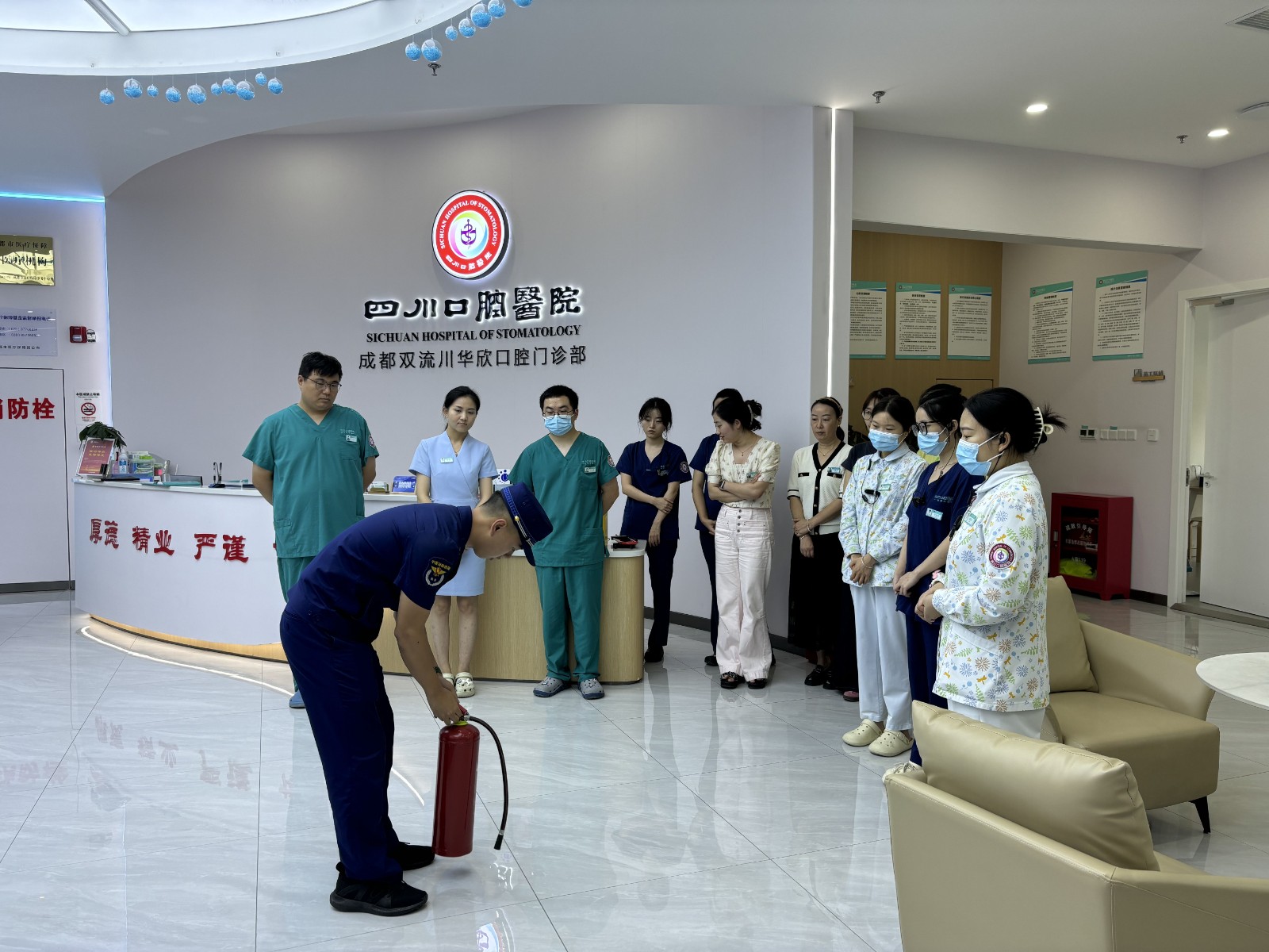 為進一步增強醫(yī)護人員的消防安全意識和自防自救的能力。8月7日,四川口腔醫(yī)院雙流川華欣門診部組織開展消防安全培訓活動。