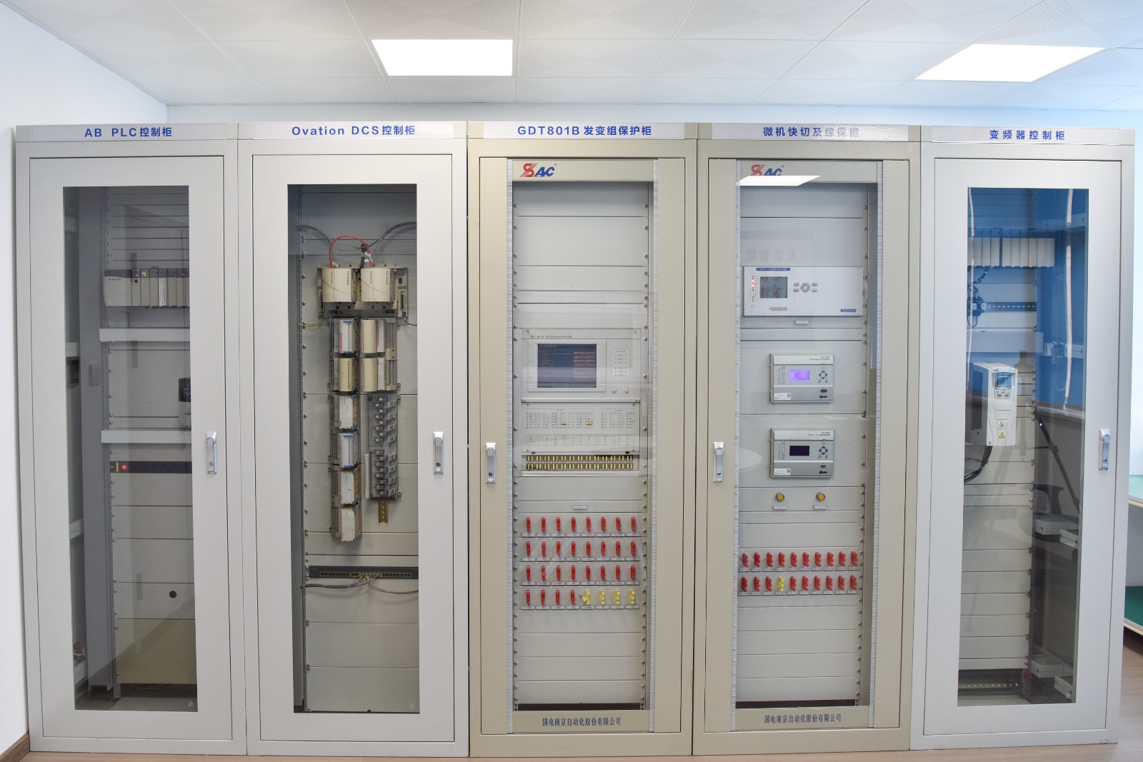 培訓(xùn)室主要設(shè)置了機(jī)組DCS控制系統(tǒng)、發(fā)變組保護(hù)、PLC、微機(jī)快切及綜合保護(hù)裝置和變頻器五面培訓(xùn)柜。這些系統(tǒng)設(shè)備集成度高,技術(shù)復(fù)雜,均為火力發(fā)電廠電氣、熱控兩個(gè)專業(yè)的主要核心技術(shù)。由于運(yùn)行中較難維護(hù),且影響面大,風(fēng)險(xiǎn)高,技術(shù)人員平時(shí)能動(dòng)手操作、練習(xí)機(jī)會(huì)很少。聯(lián)合培訓(xùn)室的建成,將生產(chǎn)現(xiàn)場(chǎng)的電、熱核心技術(shù)模塊搬到培訓(xùn)室,增加了員工上手操練機(jī)會(huì),為電熱專業(yè)核心技術(shù)人才的培養(yǎng)創(chuàng)造了良好條件。