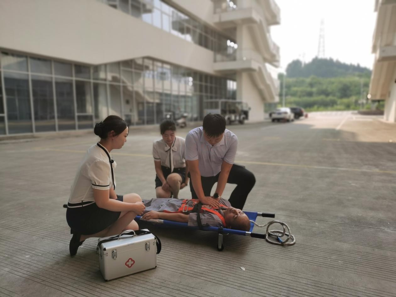救援人員佩戴便攜式呼吸器、安全繩、氣體檢測儀下井,井口處設(shè)專人監(jiān)護(hù)并打開通風(fēng)設(shè)備,及時(shí)匯報(bào)內(nèi)部情況。救援人員將受傷人員用繩索綁扎,拉升至地面并迅速將傷員轉(zhuǎn)移至通風(fēng)空曠處,立即展開現(xiàn)場救護(hù)工作,經(jīng)過一系列的救護(hù)措施后,傷員得到有效救治,從事故發(fā)生到完成救護(hù),整個(gè)過程耗時(shí)15分鐘。