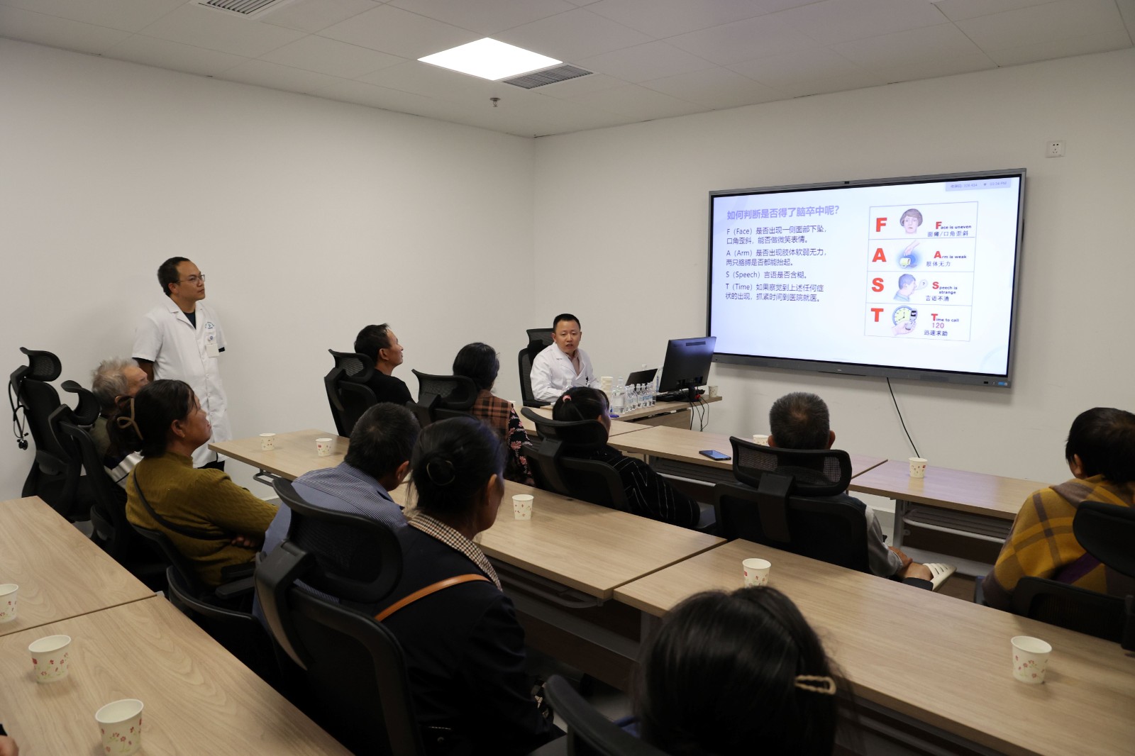 在健康講座活動現(xiàn)場,川投西昌醫(yī)院心內(nèi)科副主任鄧加華講解了高血壓帶來的腦出血、心肌梗死、腎功能衰竭、動脈硬化等主要危害與防治知識;神經(jīng)內(nèi)科專業(yè)組組長倪洋講解了在日常生活中如何判斷患上腦卒中疾病與腦卒中疾病的相關(guān)知識。