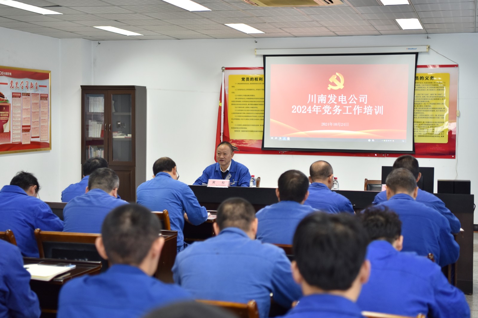 為進一步提升黨員干部政治理論水平,提高黨務(wù)工作人員履職能力,推動公司黨建工作取得新突破,10月24日,川南發(fā)電開展2024年黨務(wù)工作人員培訓(xùn)。川南發(fā)電公司黨委副書記、工會主席黃松主持會議并講話,黨務(wù)工作人員、黨員代表及優(yōu)秀團員青年代表共40余人參加學(xué)習(xí)。