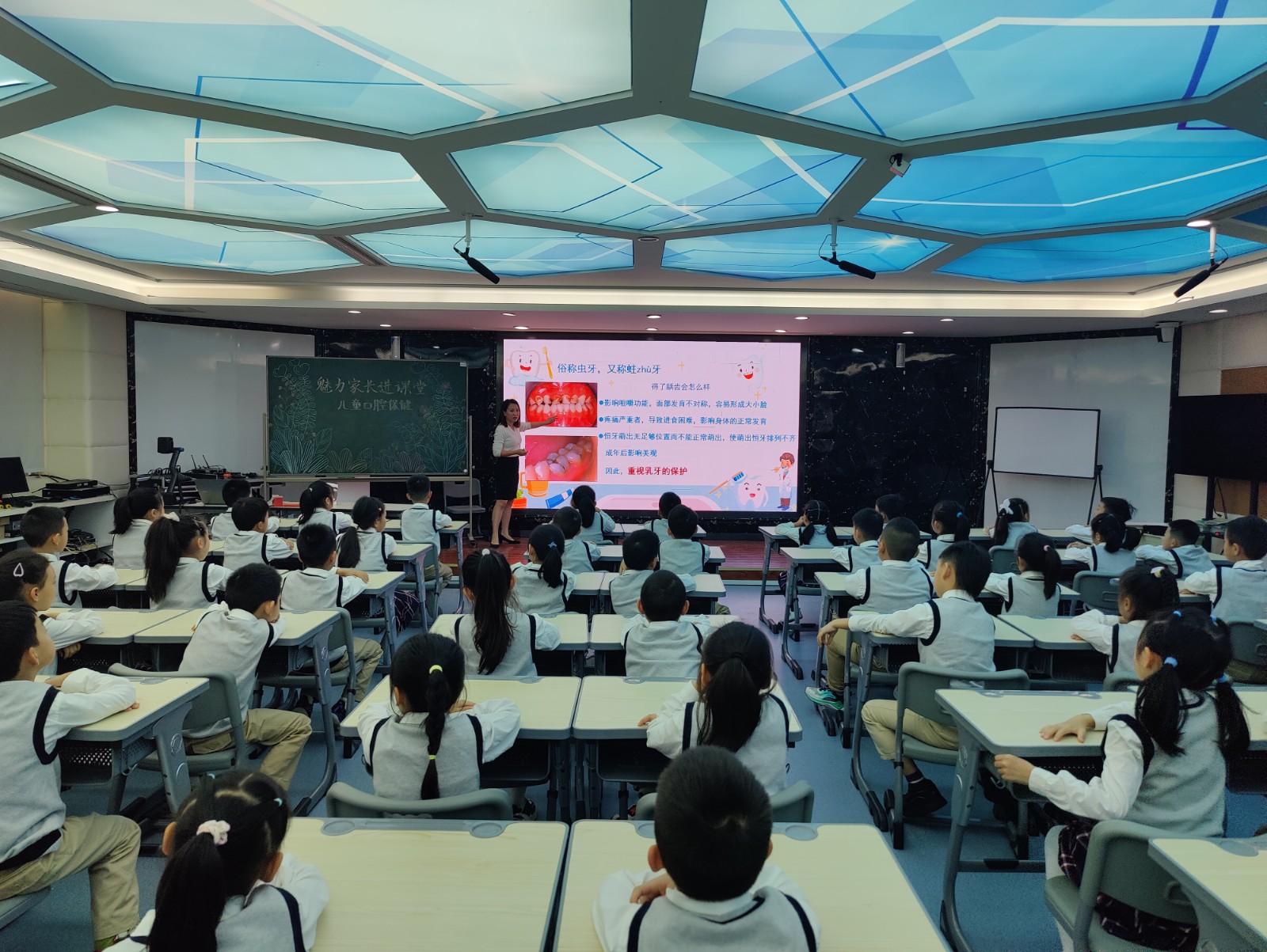 為積極貫徹“一老一小”健康關(guān)愛政策,扎實做好“三減三健”工作,進(jìn)一步完善校園健康服務(wù)體系,重慶華西牙科醫(yī)院大力開展口腔健康課堂進(jìn)校園活動。10月31日,重慶華西牙科走進(jìn)新村實驗小學(xué),為學(xué)生們送上了一堂生動有趣的口腔健康知識課堂。