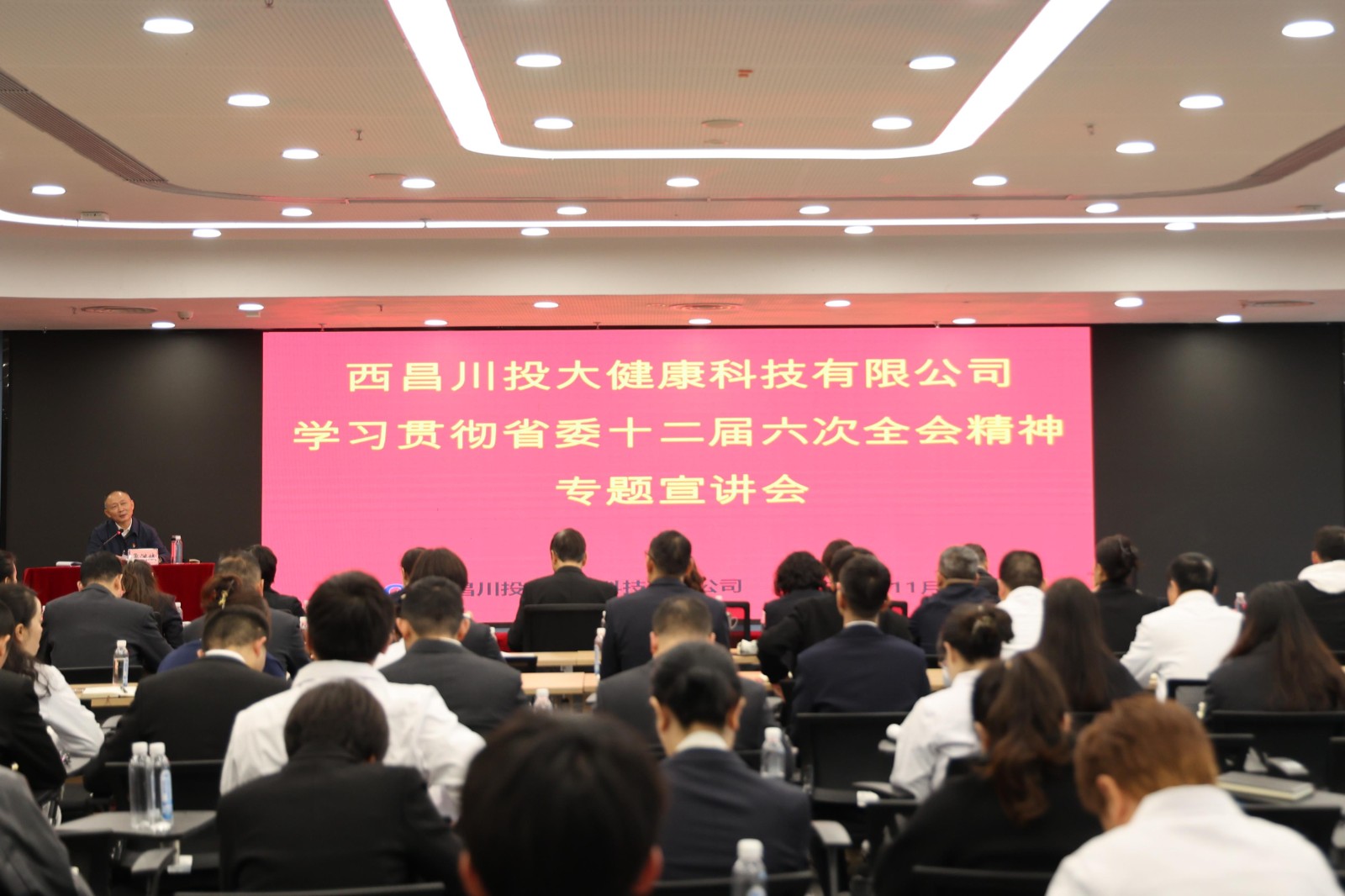 為深入貫徹落實省委十二屆六次全會精神,按照川投大健康產(chǎn)業(yè)集團黨委工作部署,11月7日,川投大健康產(chǎn)業(yè)集團黨委書記、董事長魯洪斌到川投西昌大健康公司作省委十二屆六次全會精神宣講。川投西昌大健康公司黨委副書記、副總經(jīng)理、院長金鴻主持會議。