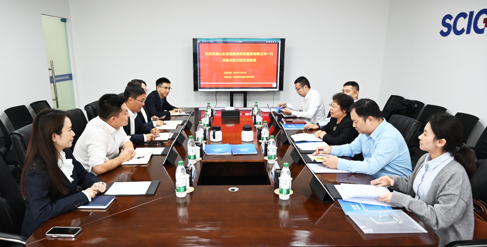 山東省融擔(dān)投資公司綜合管理部部長(zhǎng)范華磊,山東省融擔(dān)供應(yīng)鏈公司副總經(jīng)理郭中航、產(chǎn)品經(jīng)理谷呈涵,川投云鏈運(yùn)營(yíng)部業(yè)務(wù)團(tuán)隊(duì)等參加座談交流。