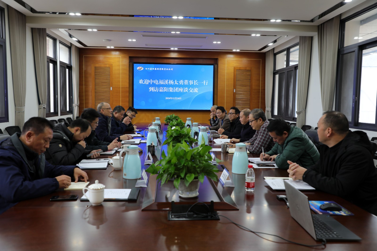 近日,中電福溪電力開(kāi)發(fā)有限公司黨委書(shū)記、董事長(zhǎng)楊太勇一行到訪嘉陽(yáng),雙方就合作事宜進(jìn)行了座談交流。