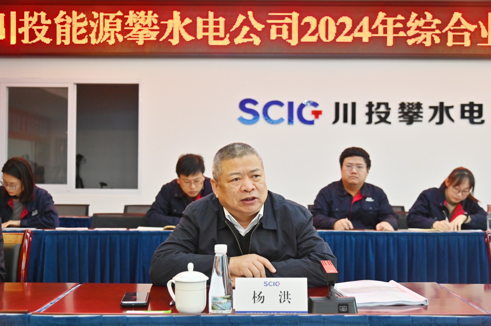 楊洪對攀水電公司2024年度工作表示肯定。他指出,攀水電公司領導班子團結(jié)帶領全體干部員工自我加壓、勇于擔當、奮力拼搏,在銀江水電站的建設中克服了種種困難,提前1年實現(xiàn)了投產(chǎn)發(fā)電的目標。針對2025年工作,他強調(diào),攀水電公司要始終堅持黨建引領,把黨的領導融入公司業(yè)務工作的各方面全過程,強化責任擔當,狠抓工作落實,確保工程質(zhì)量、進度、發(fā)電收益、電力營銷等各項年度目標任務順利完成。要壓緊壓實安全責任,圍繞提升安全生產(chǎn)工作的精準性實效性,抓早抓小,穩(wěn)步推動治本攻堅三年行動,落實落細安全生產(chǎn)各項工作,以過硬措施堅決守牢生態(tài)紅線、安全底線。要凝心聚力深化改革,按照集團關于深化改革的決策部署,以釘釘子精神推動各項改革任務落地實施,全力沖刺銀江水電站全部機組投產(chǎn)發(fā)電目標,在推動公司高質(zhì)量發(fā)展再創(chuàng)新功、再創(chuàng)佳績。