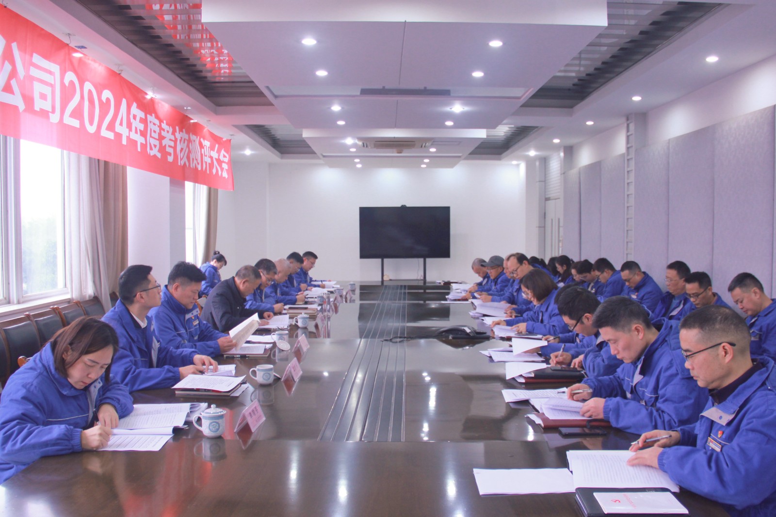 1月16日上午,川南發(fā)電公司組織領(lǐng)導(dǎo)班子成員、退休的原公司領(lǐng)導(dǎo)、全體中層管理人員及員工代表對2024年度領(lǐng)導(dǎo)班子、領(lǐng)導(dǎo)人員以及企業(yè)領(lǐng)導(dǎo)人員選拔任用工作“一報告兩評議”進(jìn)行考核測評??己藴y評會由黨委書記、董事長劉勝金主持。