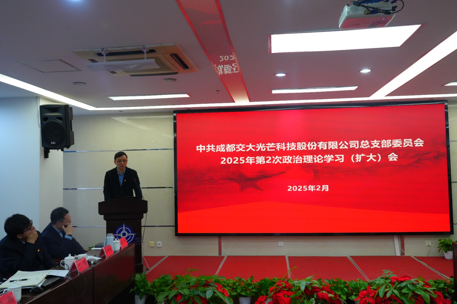 2月21日,交大光芒黨總支召開2025年第2次政治理論學(xué)習(xí)(擴大)會議。會議由黨總支書記、常務(wù)副總經(jīng)理王濤主持,黨總支委員、經(jīng)營班子成員出席會議,中層及以上管理人員參加會議。