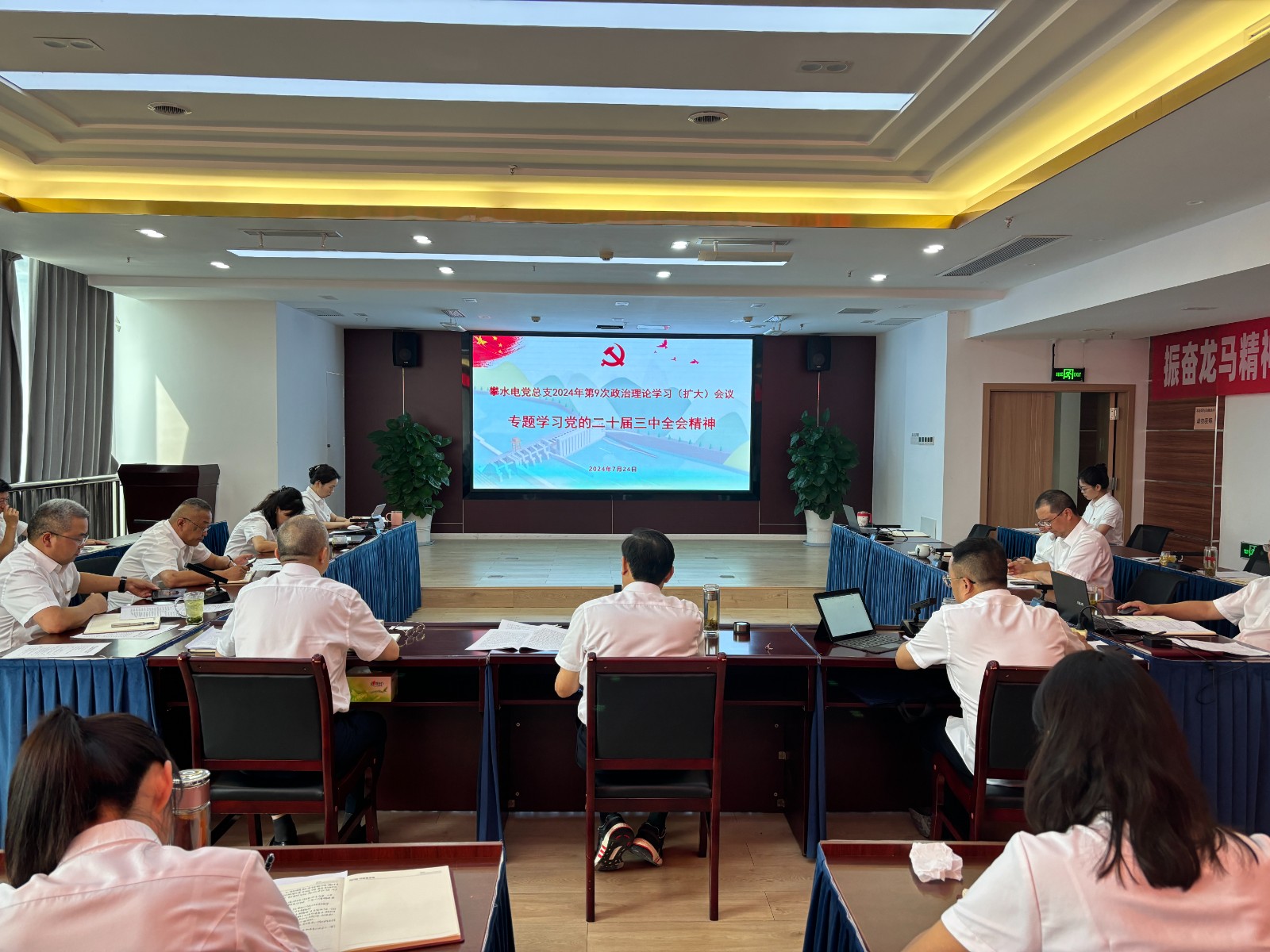 7月24日,攀水電公司黨總支召開2024年第9次政治理論學(xué)習(xí)(擴(kuò)大)會(huì)議,專題傳達(dá)學(xué)習(xí)黨的二十屆三中全會(huì)精神。會(huì)議由川投能源副總經(jīng)理、攀水電公司黨總支書記、董事長(zhǎng)徐孝剛主持。公司黨總支政治理論學(xué)習(xí)會(huì)成員、全體中干、支部書記、其他黨員、統(tǒng)戰(zhàn)對(duì)象、入黨積極分子共計(jì)30余人參加學(xué)習(xí)。