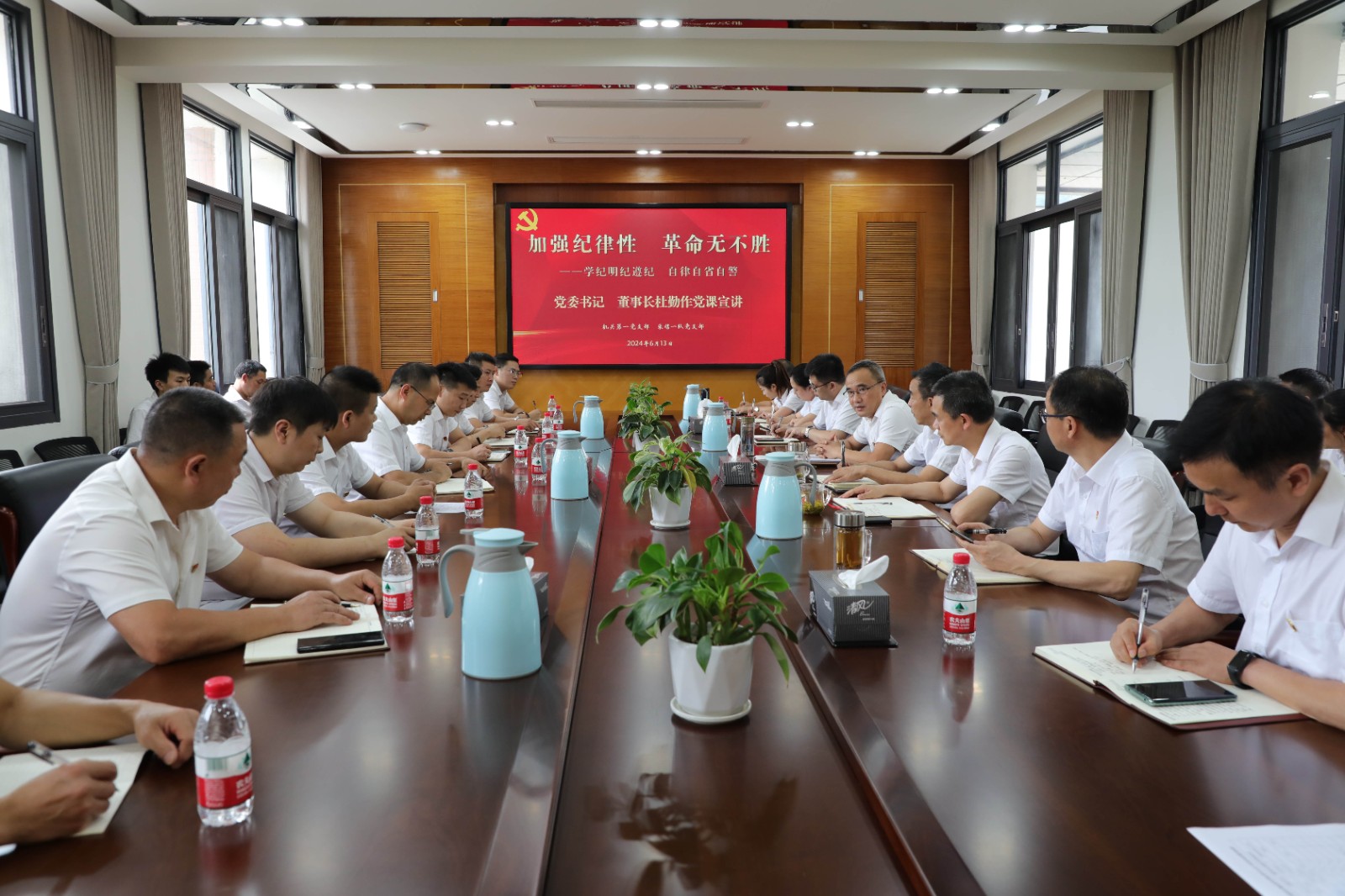 6月13日下午,嘉陽(yáng)集團(tuán)黨委書(shū)記、董事長(zhǎng)杜勤作《加強(qiáng)紀(jì)律性 革命無(wú)不勝》專(zhuān)題黨課宣講,解讀新修訂的《中國(guó)共產(chǎn)黨紀(jì)律處分條例》,提出紀(jì)律要求,機(jī)關(guān)第一黨支部、采一隊(duì)黨支部黨員參加學(xué)習(xí)。