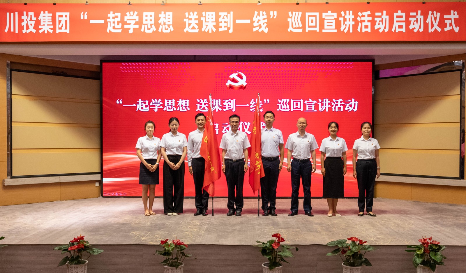為深入學(xué)習(xí)宣傳貫徹黨的二十大精神,做好省委十二屆三次全會(huì)精神宣傳宣講,落實(shí)主題教育“學(xué)思想、強(qiáng)黨性、重實(shí)踐、建新功”總要求,7月18日下午,川投集團(tuán)召開(kāi)“一起學(xué)思想,送課到一線”巡回宣講活動(dòng)啟動(dòng)儀式。川投集團(tuán)黨委書記、董事長(zhǎng)吳曉曦等在家領(lǐng)導(dǎo)班子成員出席啟動(dòng)儀式。集團(tuán)公司總經(jīng)理助理、相關(guān)部門負(fù)責(zé)人、機(jī)關(guān)各支部黨員代表和在蓉所屬企業(yè)黨員代表參加活動(dòng)。