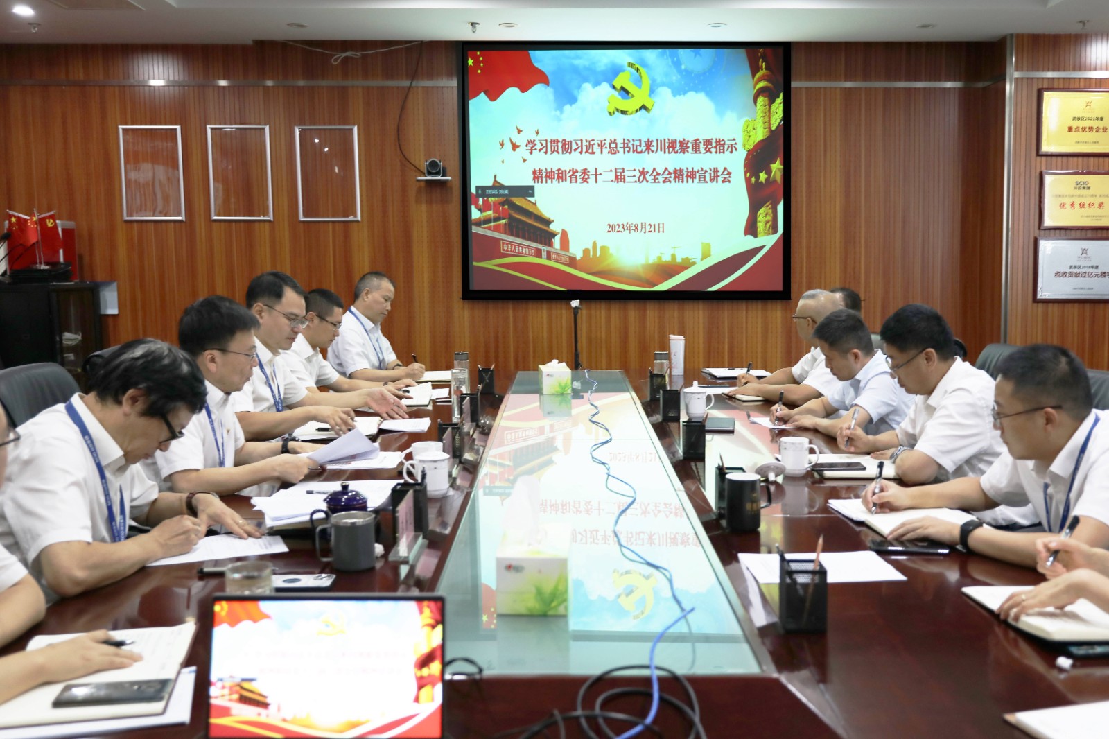8月21日,集團(tuán)公司副總經(jīng)理、房地產(chǎn)公司董事長(zhǎng)孫前元在房地產(chǎn)公司學(xué)習(xí)貫徹習(xí)近平總書記來川視察重要指示精神和省委十二屆三次全會(huì)精神宣講。房地產(chǎn)公司黨總支書記、總經(jīng)理王海洋主持會(huì)議。